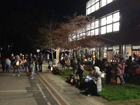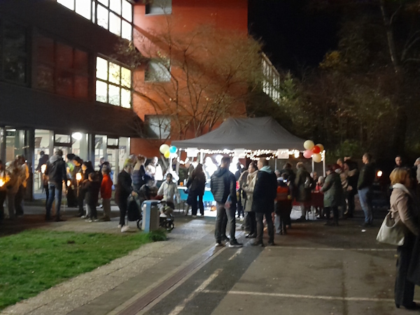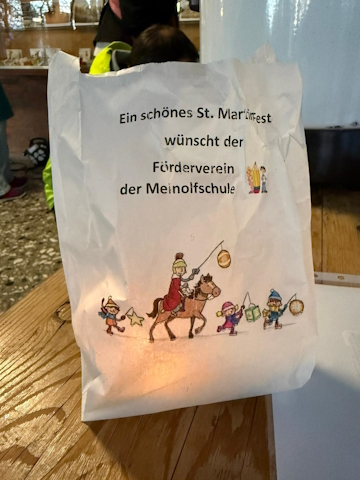 Der Martinstag begann für die Meinolf-Kinder zunächst morgens mit einem großen Gottesdienst in der Meinolfkirche. Bei Einbruch der Dunkelheit trafen sich alle wieder zu unserer traditionellen Martinsfeier auf dem Schulhof. Stellvertretend für unsere kommissarische Schulleiterin Frau Zimmer begrüßte Herr Wellert alle Kinder und deren Familien. Gemeinsam mit Frau Westphalen stimmten die Feiernden danach das Lied ,,Sankt Martin" an, das wohl jedes Kind kennt. Im Gegensatz zum Martinszug 2024 gab es diesmal erfreulicherweise kein Regenwetter. Bei milden Temperaturen konnte der Zug - angeführt von unserer Klasse 1a - diesmal unter trockenen Bedingungen starten ! Wieder einmal ging es rings um den Ischelandteich, der durch die bunt leuchtenden Laternen in ein geheimnisvoll-funkelndes Licht getaucht wurde. Anschließend konnten sich alle mit Martinsbrezeln, Stutenkerlen oder Brühwürstchen stärken. Natürlich gab es auch wieder den beliebten Kinderpunsch ! Wir bedanken uns herzlich beim Förderverein und allen fleißigen Eltern, die uns auch in diesem Jahr wieder tatkräftig unterstützt haben. Dank, es war echt eine wunderschöne Martinsfeier !