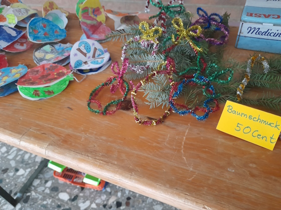Die Einnahmen des Adventsbasars werden an den Förderverein weitergeleitet, der davon im kommenden Jahr Pausenspielzeug und evtl. auch weitere Bücher für die Klassenbüchereien anschaffen wird. Das Geld kommt also auf jeden Fall den Meinolf-Kindern zugute !